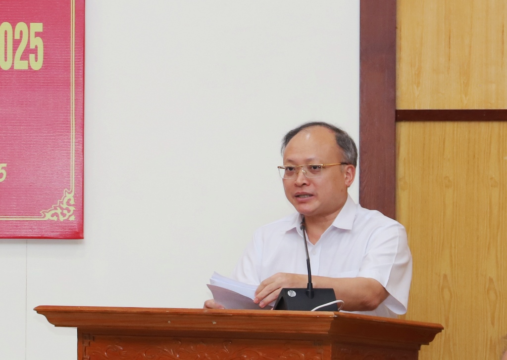 | Giám đốc Sở Nông nghiệp và Môi trường Cao Văn Cường báo cáo tại hội nghị. |