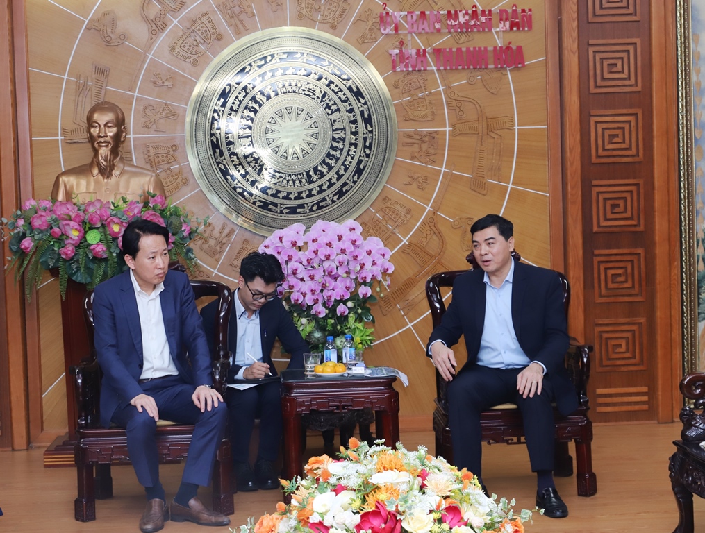 Đồng chí cũng đánh giá cao dự án Đầu tư xây dựng và kinh doanh hạ tầng KCN Thăng Long Thanh Hóa giai đoạn 1 (thuộc KCN phía Tây thành phố Thanh Hóa) do Tập đoàn đang triển khai tại Thanh Hóa. Đồng chí cam kết sẽ chỉ đạo các sở, ngành liên quan đồng hành cùng chủ đầu tư, tháo gỡ khó khăn trong quá trình thực hiện dự án. Đồng chí mong muốn Tập đoàn Sumitomo sớm hoàn thiện dự án, thu hút được nhiều nhà đầu tư thứ cấp, thu hút công nghiệp phụ trợ, sinh thái, công nghệ cao, giải quyết lao động việc làm tại địa phương, góp phần thúc đẩy phát triển kinh tế xã hội của tỉnh. Đồng thời, đồng chí cũng đề nghị phía Tập đoàn Sumitomo tiếp tục quan tâm đầu tư những dự án mới mang tính chất thế mạnh của mình trên địa bàn tỉnh
