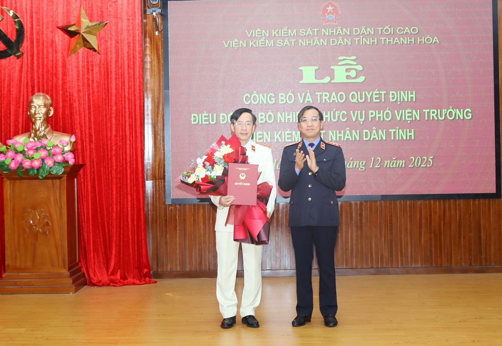Sáng ngày 23/12/2025, VKSND tỉnh Thanh Hóa tổ chức hội nghị tổng kết công tác năm 2025, triển khai nhiệm vụ năm 2026; đồng thời thực hiện công bố Quyết định điều động, bổ nhiệm đồng chí Lê Quang Hải giữ chức Phó Viện trưởng VKSND tỉnh Thanh Hoá.