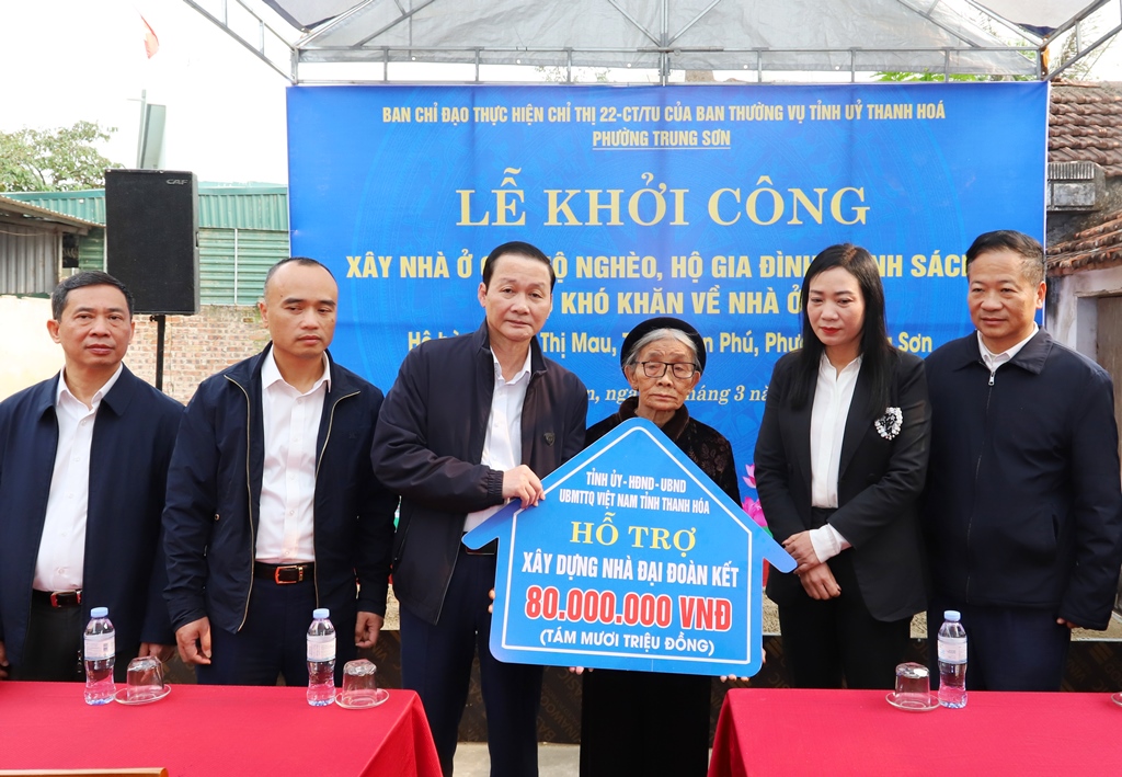 Sáng 20/3/2025, đồng chí Đỗ Minh Tuấn, Phó Bí thư Tỉnh ủy, Chủ tịch UBND tỉnh đã dự lễ khởi công và trao biển hỗ trợ xây dựng nhà ở cho gia đình bà Trương Thị Mau, ở tổ dân phố Xuân Phú, phường Trung Sơn, TP. Sầm Sơn.