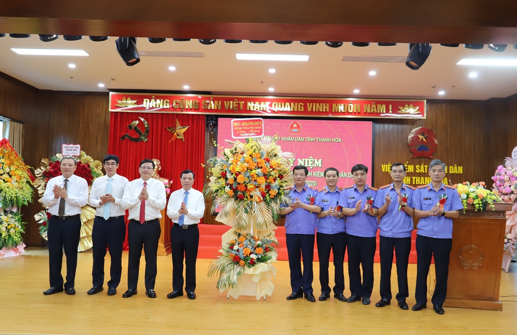 Tại buổi lễ, thay mặt Tỉnh ủy, HĐND, UBND, Ủy ban MTTQ tỉnh; các đồng chí: Phó Bí thư Thường trực Tỉnh ủy Lại Thế Nguyên, Phó Chủ tịch UBND tỉnh Mai Xuân Liêm cùng các đồng chí trong BTV Tỉnh ủy đã tặng hoa chúc mừng Viện KSND tỉnh.