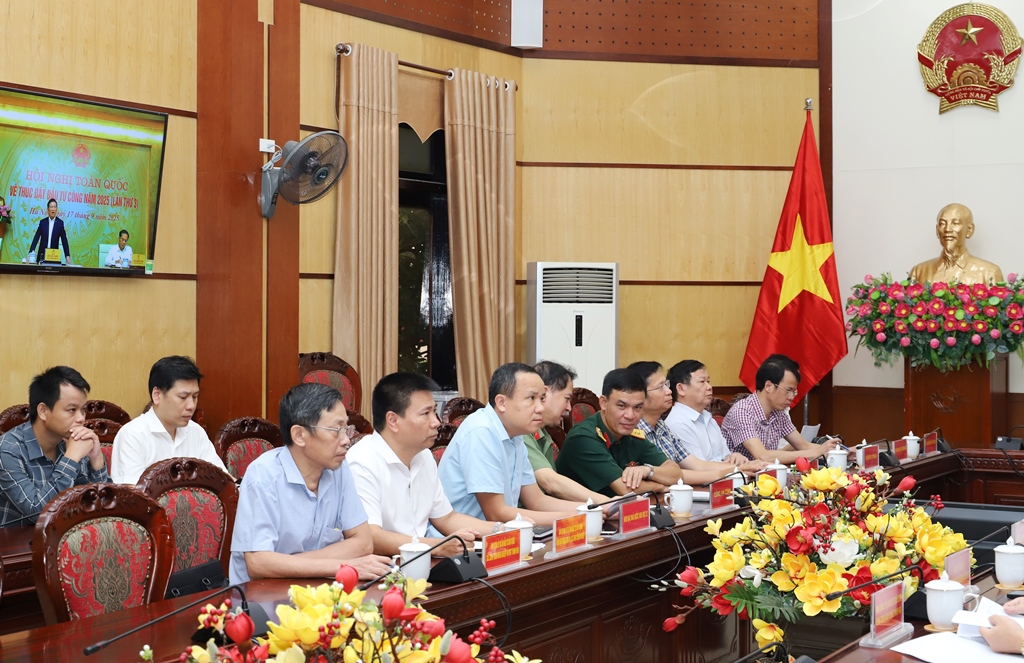 Tại điểm cầu Thanh Hóa, đồng chí Đầu Thanh Tùng, Tỉnh ủy viên, Phó Chủ tịch UBND tỉnh và đại diện các sở, ngành tham dự hội nghị.