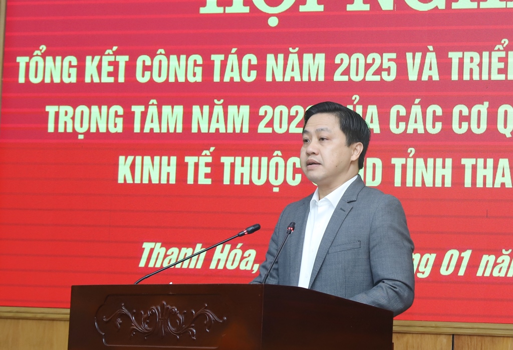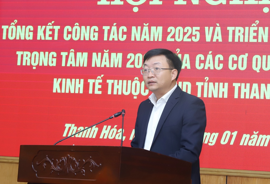 Tiếp đó, hội nghị được nghe đồng chí Giám đốc Sở Nông nghiệp và Môi trường trình bày báo cáo tóm tắt tổng kết công tác năm 2025 và triển khai nhiệm vụ trọng tâm năm 2026 ngành Nông nghiệp và Môi trường; đồng chí Giám đốc Sở Xây dựng trình bày báo cáo tóm tắt tổng kết công tác năm 2025 và triển khai nhiệm vụ trọng tâm năm 2026 ngành Xây dựng; đồng chí Giám đốc Sở Công Thương trình bày báo cáo tóm tắt tổng kết công tác năm 2025 và triển khai nhiệm vụ trọng tâm năm 2026 ngành Công Thương; đồng chí Trưởng Ban Quản lý Khu kinh tế Nghi Sơn và các khu công nghiệp trình bày báo cáo tóm tắt tổng kết công tác năm 2025 và triển khai nhiệm vụ trọng tâm năm 2026 Ban Quản lý Khu kinh tế Nghi Sơn và các khu công nghiệp; đồng chí Giám đốc Ban Quản lý dự án đầu tư xây dựng khu vực Khu kinh tế Nghi Sơn và các khu công nghiệp trình bày báo cáo tóm tắt tổng kết công tác năm 2025 và triển khai nhiệm vụ trọng tâm năm 2026 Ban Quản lý dự án đầu tư xây dựng khu vực Khu kinh tế Nghi Sơn và các khu công nghiệp; đồng chí Giám đốc Ban Quản lý dự án đầu tư xây dựng các công trình nông nghiệp và phát triển nông thôn trình bày báo cáo tóm tắt tổng kết công tác năm 2025 và triển khai nhiệm vụ trọng tâm năm 2026 Ban Quản lý dự án đầu tư xây dựng các công trình nông nghiệp và phát triển nông thôn.