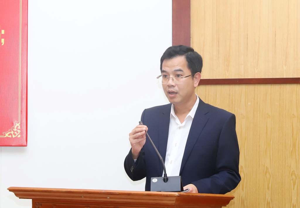 Phó Chánh Văn phòng UBND tỉnh Lê Việt Hiếu phát biểu tại hội nghị.