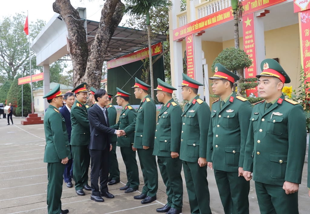 | Phó Chủ tịch UBND tỉnh Đầu Thanh Tùng thăm hỏi, chúc Tết cán bộ, chiến sĩ Tiểu đoàn 40, Trung đoàn 762. |