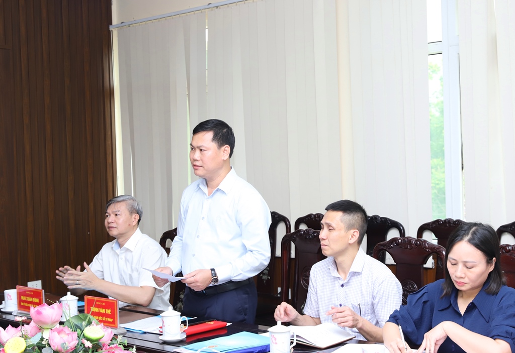 | Phó Giám đốc Sở Tư pháp phát biểu tại buổi làm việc. |